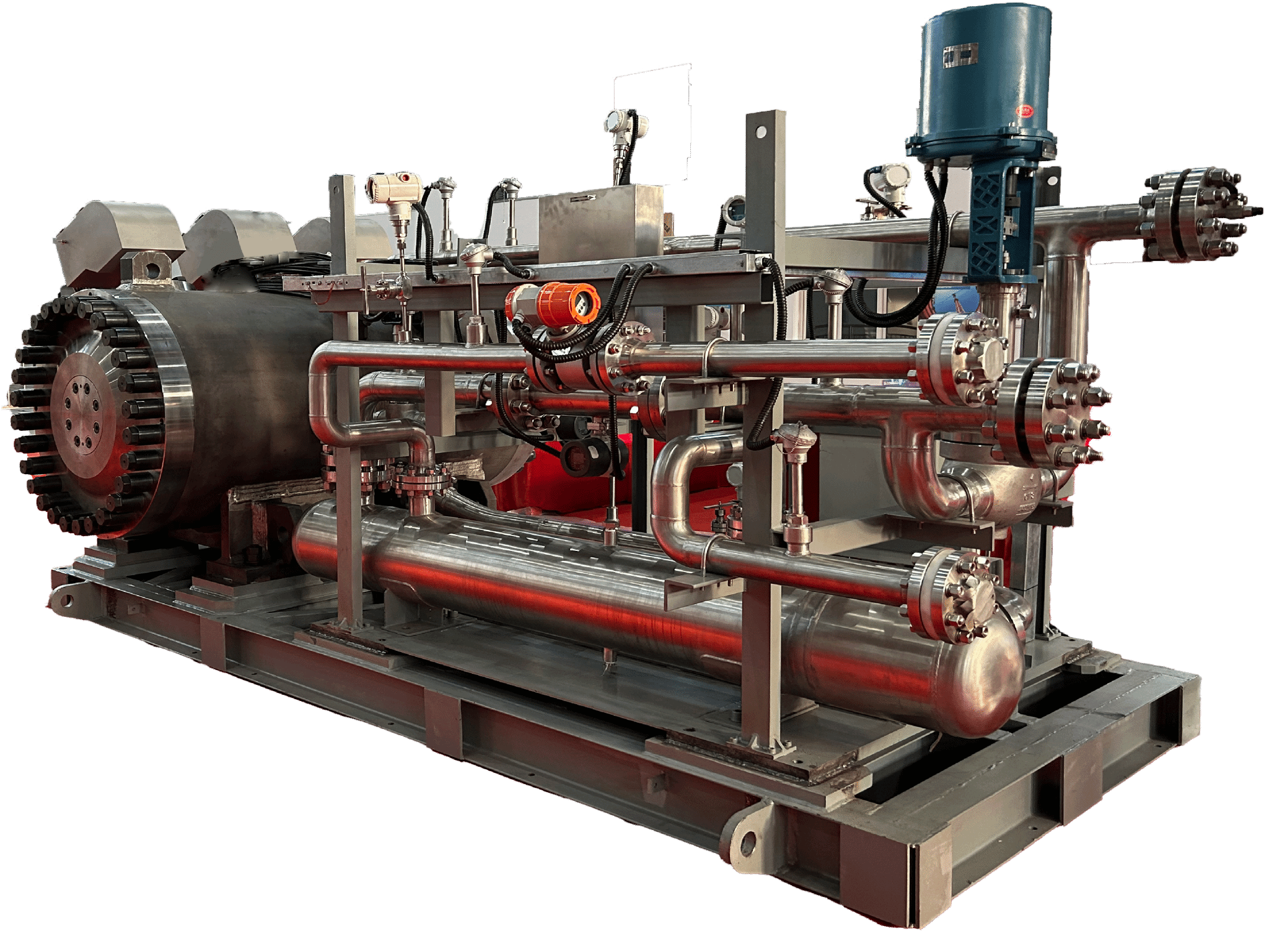 功 率:75kW工作壓力:7MPa壓 力 升:220kPa額定轉速:9800r/min標況流量:23700 Nm3/h產品介紹:氦氣壓縮機是臥式三級離心壓縮機,由高速異步電機驅動,電磁軸承支撐,整機密封,電氣接線由電氣貫穿件引出。氦氣壓縮機配置PLC系統(tǒng),用于對氦氣壓縮機進行功能控制,并執(zhí)行上層DCS系統(tǒng)指令,完成氦氣壓縮機系統(tǒng)的啟停以及調速等功能,執(zhí)行輸送燃料球、輸送吸收球以及氦凈化系統(tǒng)等功能。在高溫氣冷堆中,氦氣壓縮機采用單堆雙機總體布置,...