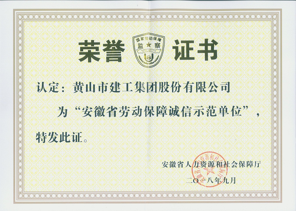 這是我公司第三次獲得“安徽省勞動保障誠信示范單位”榮譽。
