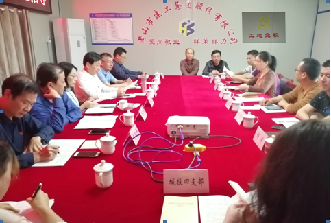 “工地建黨校、黨課進(jìn)工地”,2019年4月26日下午市委組織部非公工委朱永進(jìn)書記在百忙之中蒞臨黃山市建工集團(tuán)承建的中儲糧銅陵直屬庫黃山分庫工地指導(dǎo)工作,并在我公司“工地黨?!睘榇蠹疑狭艘惶谩吨袊伯a(chǎn)黨支部工作條例(試行)》專題黨課。參加黨課學(xué)習(xí)的有:黃山市建工集團(tuán)黨總支班子成員及下屬機(jī)關(guān)、第一、第二、第三黨支部書記;市城投集團(tuán)黨委領(lǐng)導(dǎo)及城投公司第四黨支部黨員領(lǐng)導(dǎo)干部;項(xiàng)目工地全體黨員、入黨積極分子約30人。