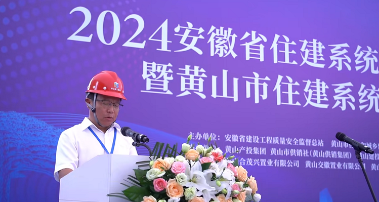 省質(zhì)量安全監(jiān)督總站站長黃欣鄭重宣布:2024安徽省住建系統(tǒng)“質(zhì)量月”活動黃山分會場暨黃山市住建系統(tǒng)“質(zhì)量月”現(xiàn)場觀摩會活動啟幕。