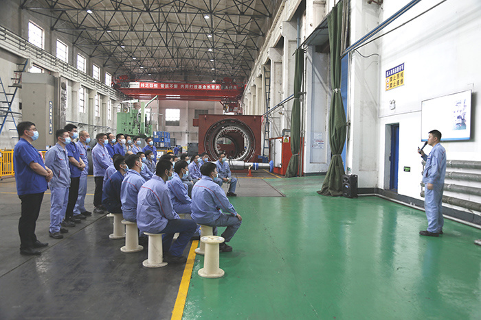 “全國(guó)勞動(dòng)模范”、黑龍江省“龍江大工匠”、佳電股份首席技師、大型車間裝配工別林講授了《滑動(dòng)軸承刮研理論知識(shí)》,把各種類型的軸瓦轉(zhuǎn)化成清晰明了的結(jié)構(gòu)組圖,將軸瓦油楔控油、油膜剛度、旋轉(zhuǎn)速度、刮研技巧與間隙、緊力控制等技術(shù)要點(diǎn)與關(guān)聯(lián)影響進(jìn)行了深入淺出的講解和提煉,干貨滿滿令現(xiàn)場(chǎng)職工受益匪淺。